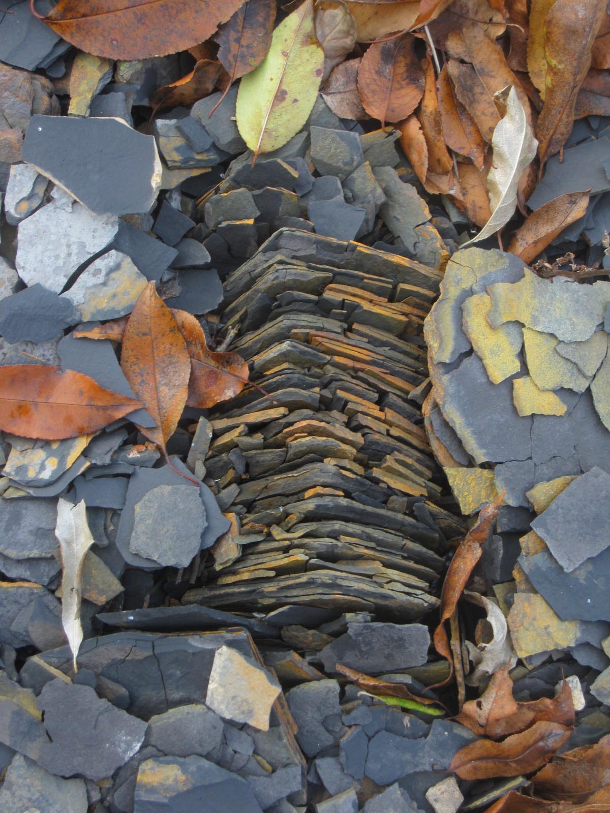 The stone below showed where water was able to flow through the rock - through the dark webbed lines. The lighter gray/blue areas are were the rock remained laminated to the layer that had previously covered it.