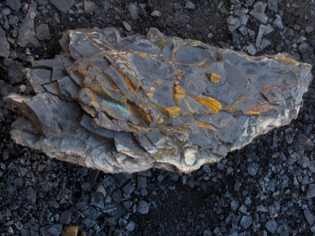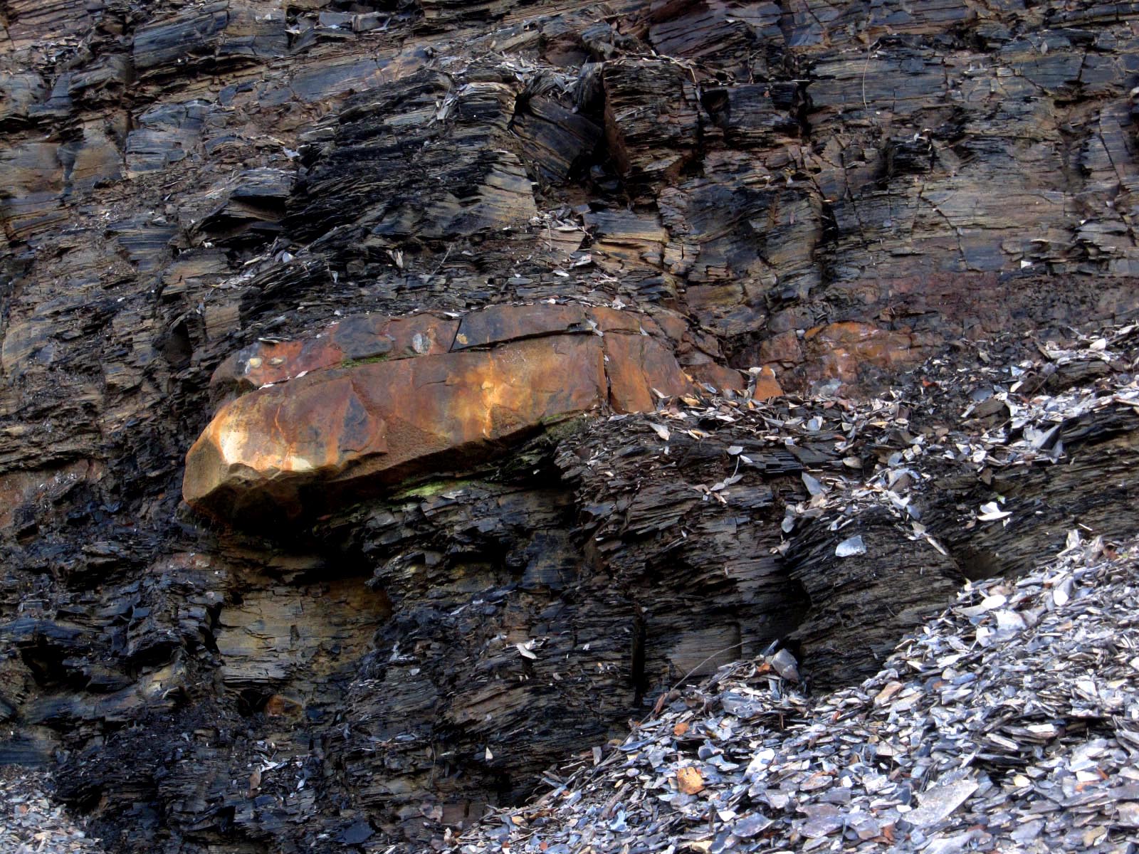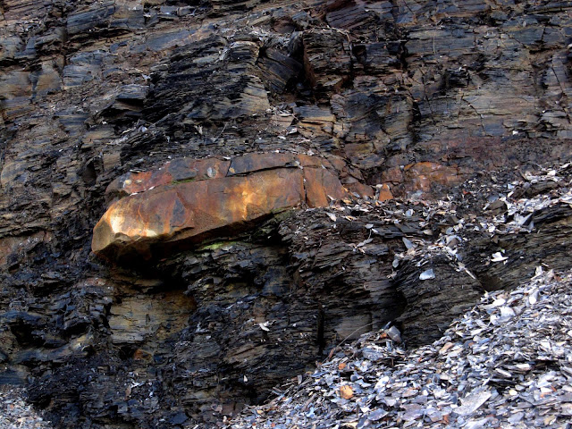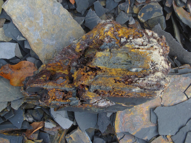 Some rocks had a lot of of rusty iron in relation to the shale. This one also had crystal formations.