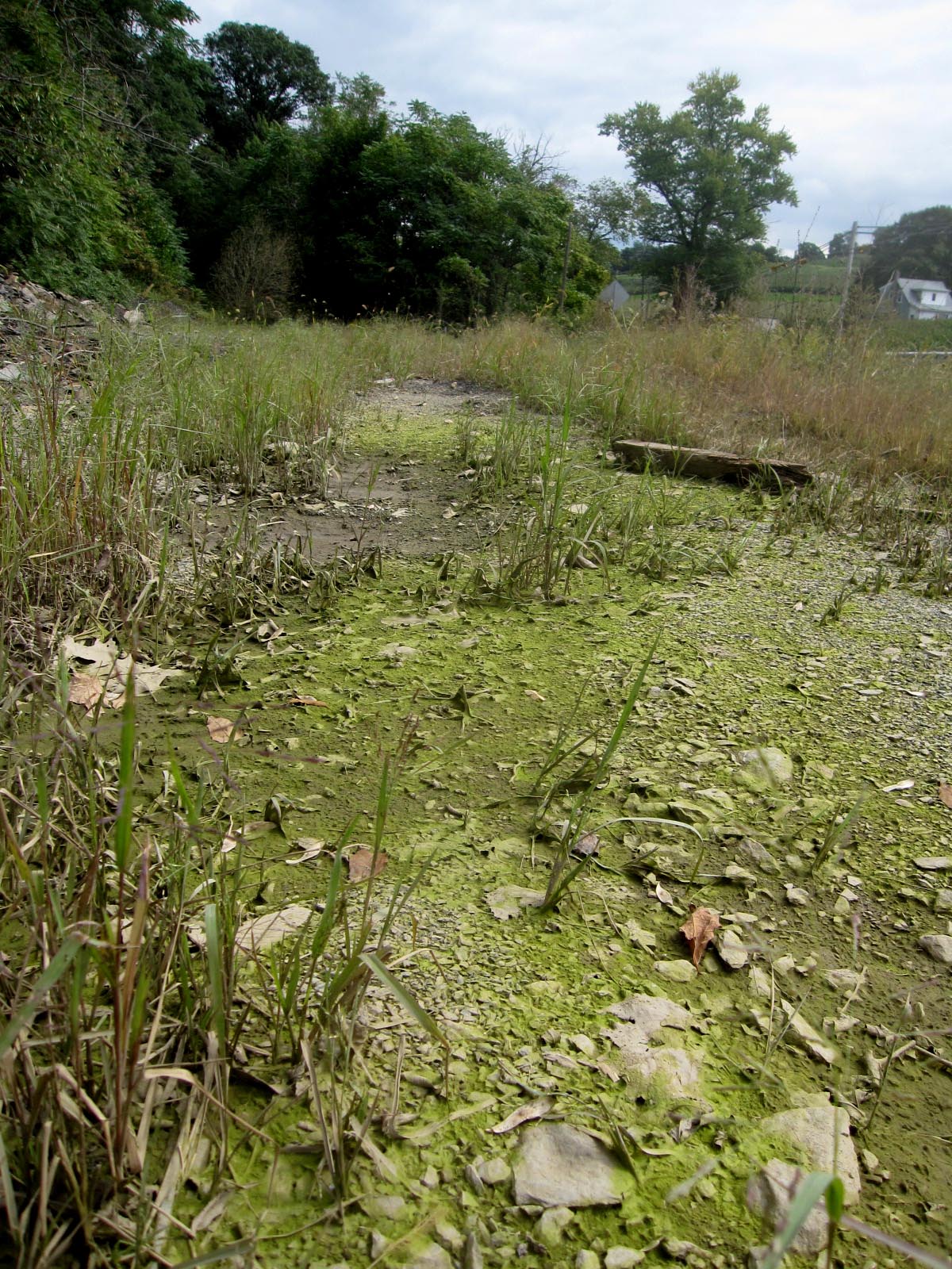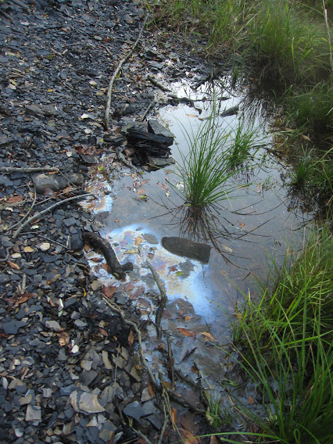 An oily substance floated on the water nearby, and its' source couldn't have been from the road - the site was too remote.
