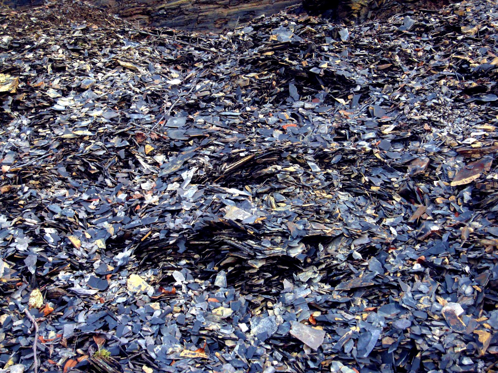 The guy definitely put a scare in me, and I wasn't going to try to go back, so I needed to find another site to harvest from. On the drive back, I asked Nick and Steve if they could identify Marcellus by sight it we were to pass it on the road. It seemed distinctive to me, but they replied unequivocally: no. There are other black shales that look similar. The Marcellus formation is generally identified by its (slightly) higher levels of radiation. In other words, there was no way I would be able to find an outcropping without being directed towards one by an expert.
